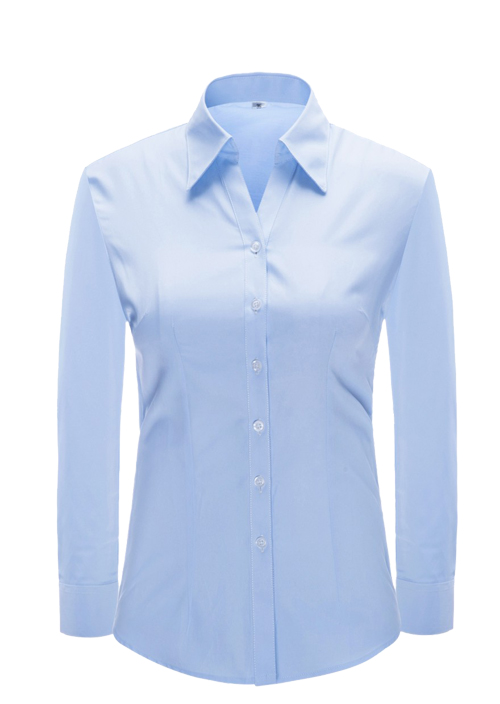 品名:女長袖v領(lǐng)襯衣;版型:修身版;貨號:YW4517 ;面料:Y4517;顏色:淺藍色細斜紋 ;Fabric:C45/T55